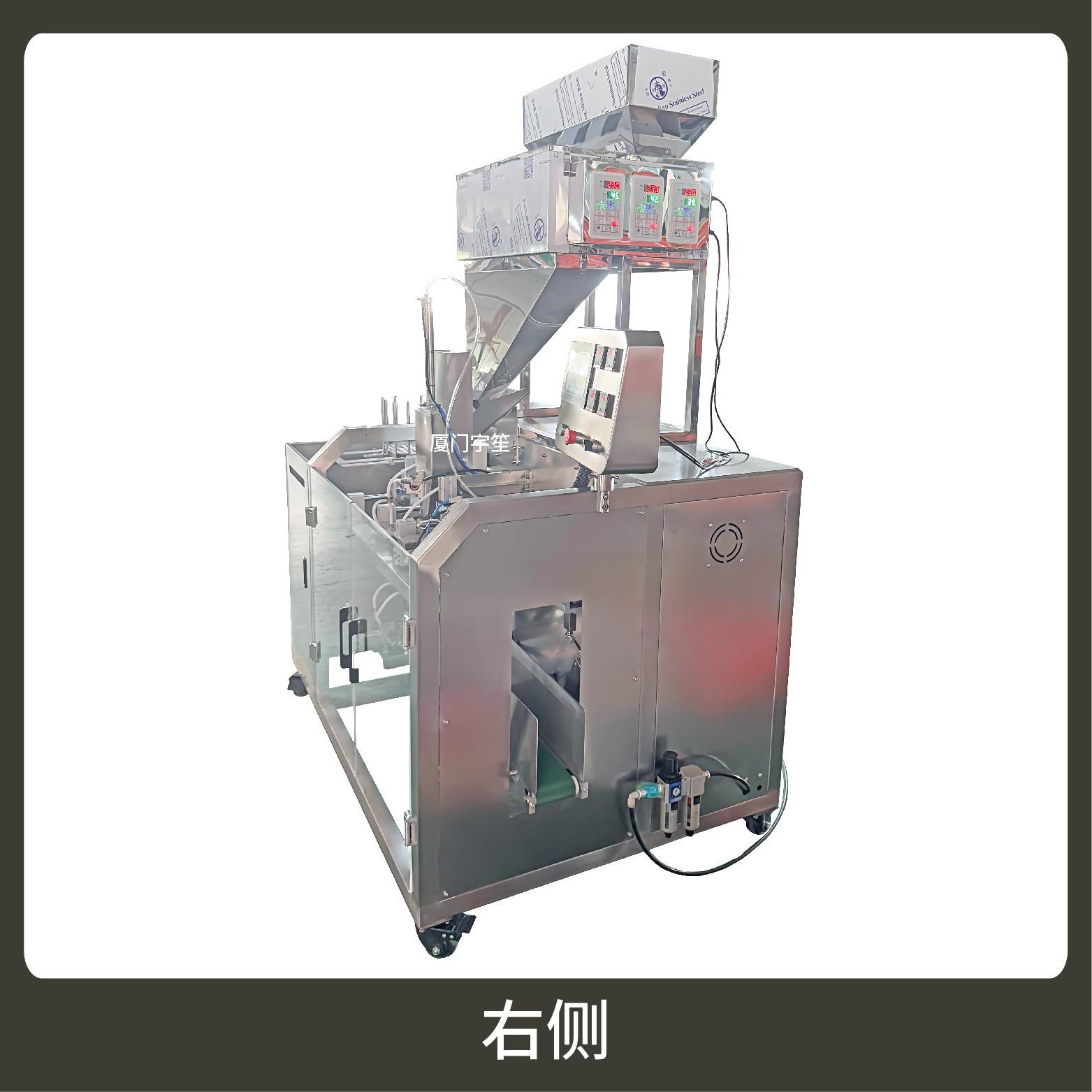 Suitable for the M-shaped bag metering and packaging of items like pet food (cat food, dog food, cat litter, etc.), snack foods (nuts, rice crackers, etc.), coffee beans, and tea leaves.